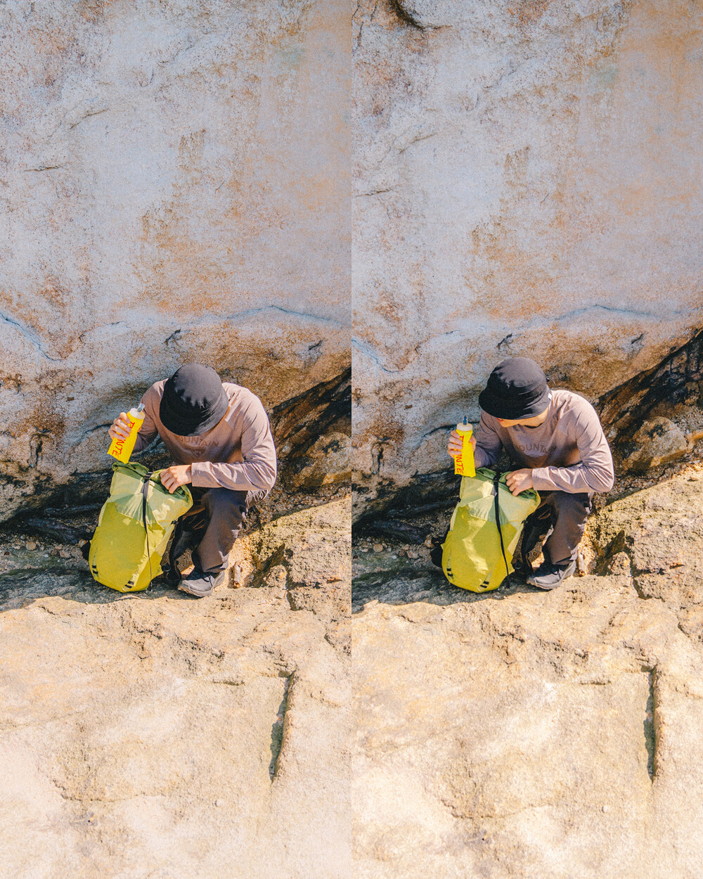 배낭 가슴 주머니에 쏙 들어가는 접이식 물병입니다. 분리 시 넓은 입구로 편리하게 물을 옮길 수 있습니다.