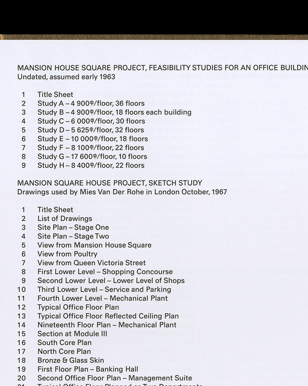 Mies in London 은 근대 건축의 거장 루트비히 미스 반 데어 로에가 영국에 남긴 유일한 작품, ‘맨션 하우스 스퀘어(브론즈 타워 + 광장)’ 계획안을 처음으로 다룬 책입니다. 1980 – 90년대 대중의 모더니즘 반감과 대처 정부, 그리고 찰스 왕세자의 비판 속에 좌초된 이 프로젝트를 복원하기 위해 저자 잭 셀프·율리아 루덴코가 미공개 도면·모형 사진·공문서 등 160쪽 분량의 아카이브를 모았습니다. “문 손잡이부터 재떨이까지 전부 설계해 달라”는 후원자 피터 팔럼보의 주문과 이에 응한 미스의 답변처럼, 건물 내부 디테일까지 담긴 설계 전 과정을 한눈에 살펴볼 수 있는 최초의 단행본입니다.