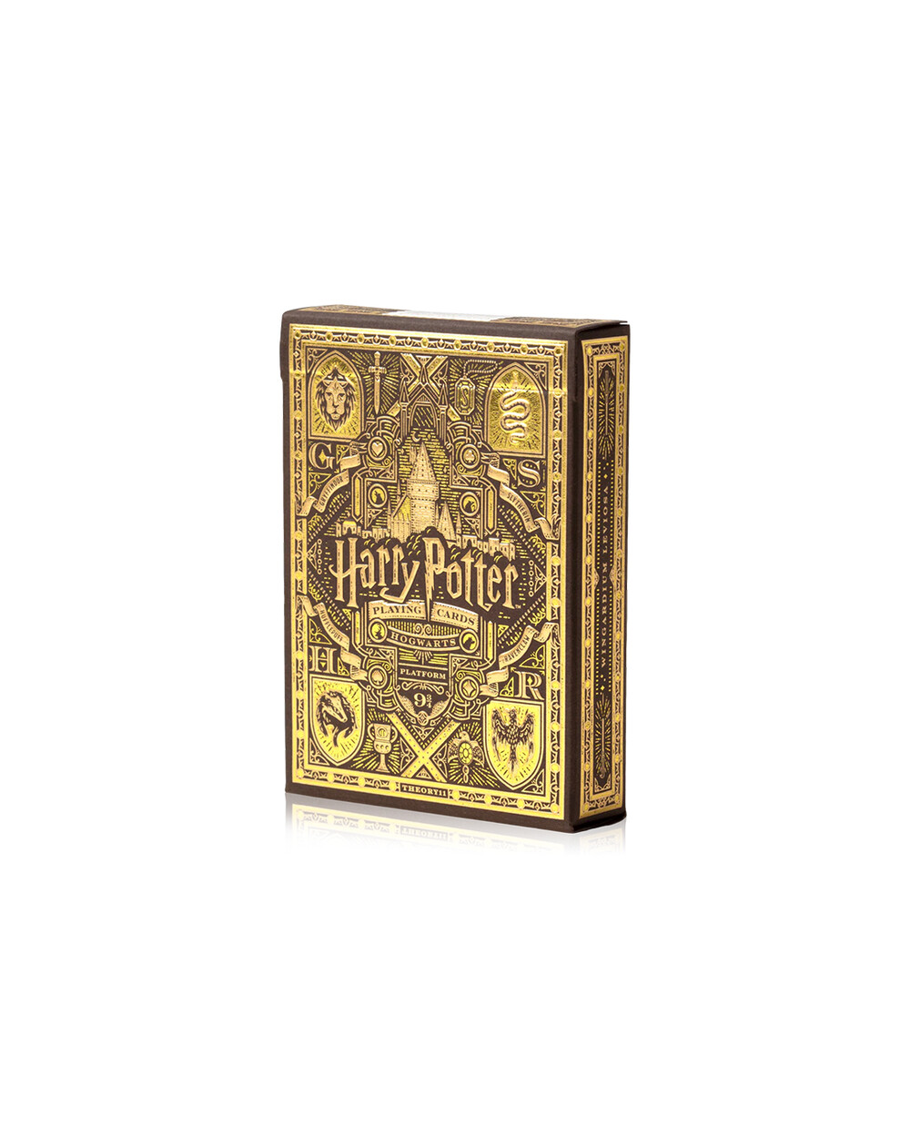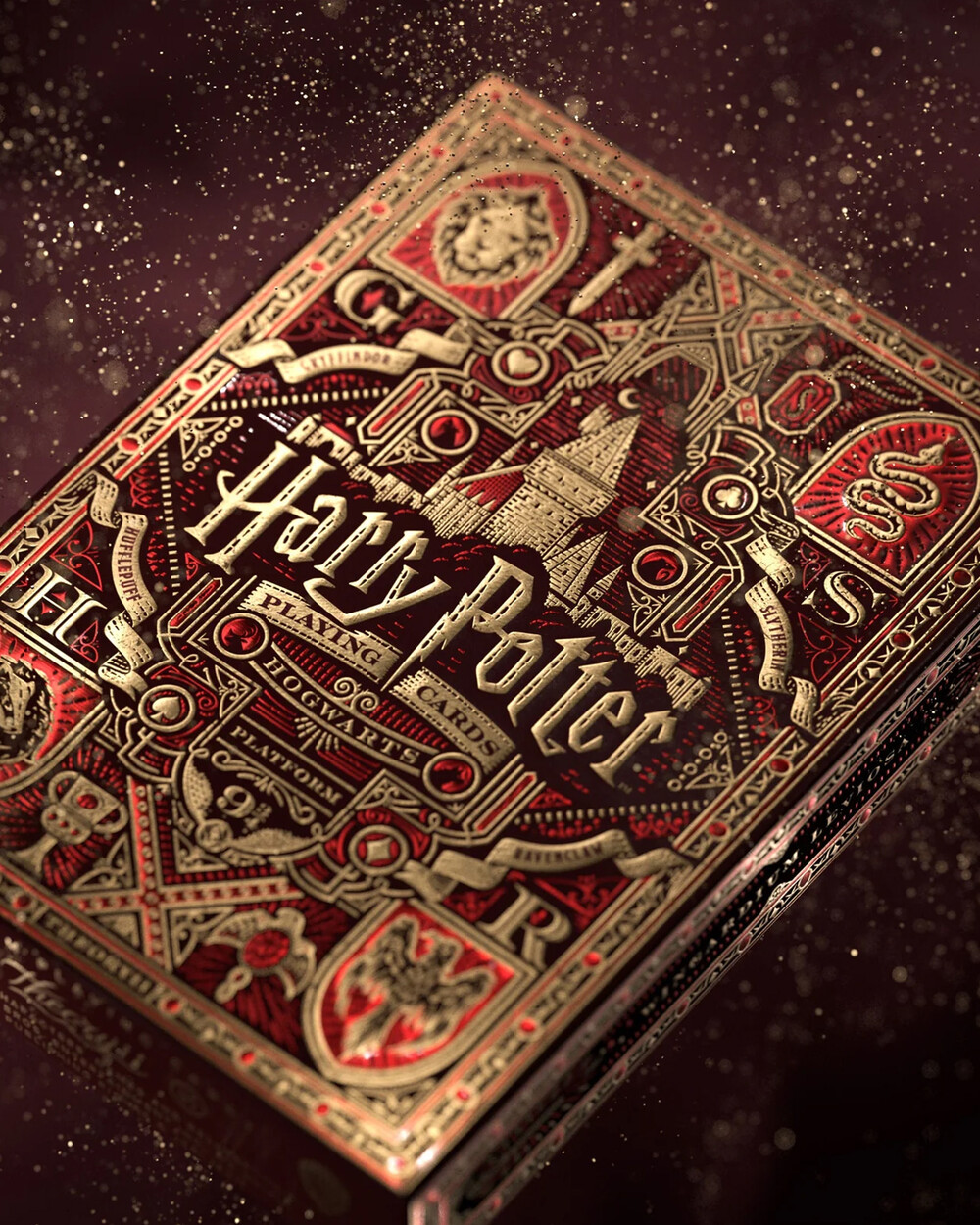 이 시리즈는 호그와트의 네 하우스(그리핀도르 / 슬리데린 / 레이븐클로 / 후플푸프)를 테마로 한 네 가지 색상 버전으로 전개되며, 하우스 컬러와 금박(foiling), 엠보싱 디테일이 들어간 박스에 담겨 있습니다. 박스는 FSC 인증 종이로 제작되었고, 카드 역시 미국에서 생산됩니다.