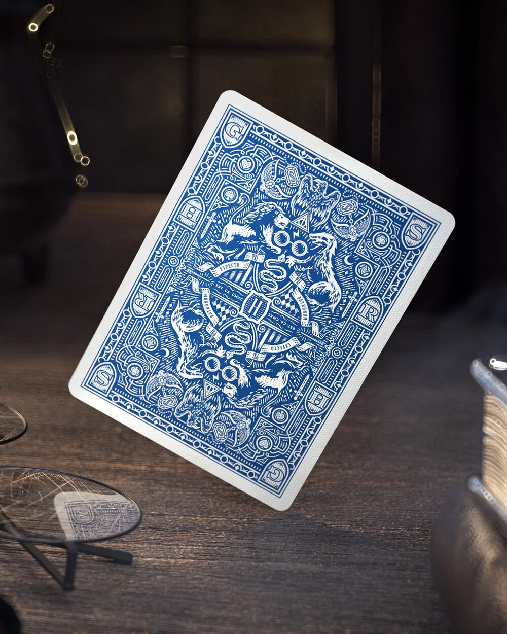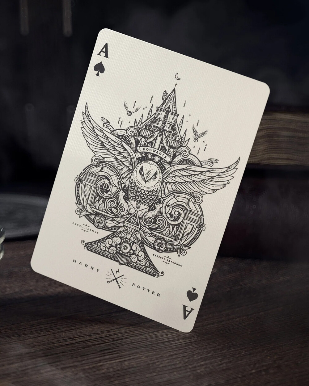 마법 세계를 손 안에 담을 수 있도록 디자인된 프리미엄 카드 덱. theory11이 해리 포터 시리즈를 새로운 비주얼로 재해석했으며, 카드의 페이스(인물 카드)는 해리, 헤르미온느, 덤블도어 등 대표 캐릭터를 기반으로 한 커스텀 일러스트로 구성됩니다. 해리가 골든 스니치를 들고 있는 모습처럼 캐릭터/장면 디테일까지 반영된 것이 특징입니다. 카드 전체(에이스, 조커, 코트 카드까지) 아트워크가 전부 전용으로 제작되었습니다.