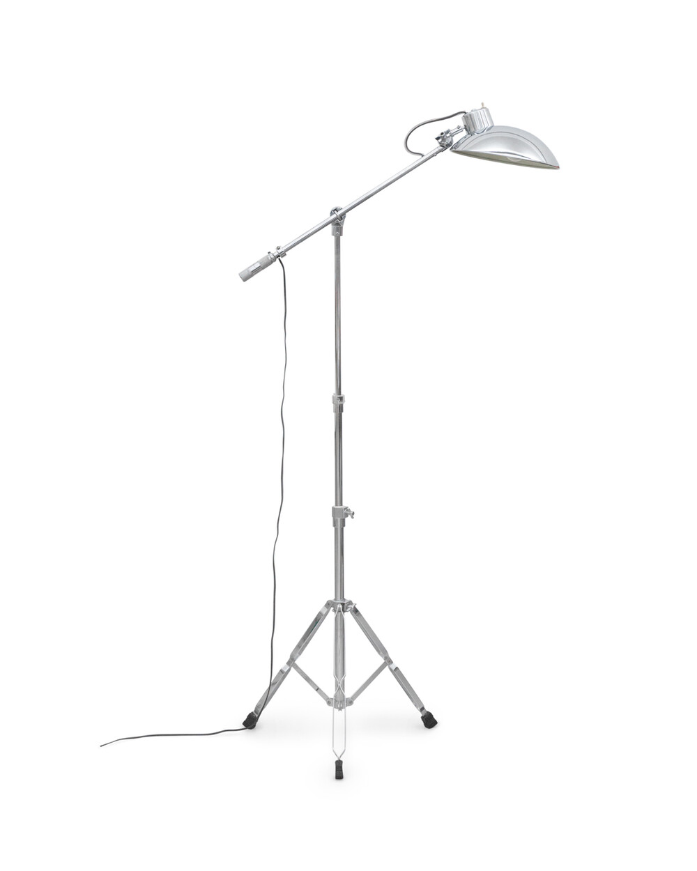 Yasu Sasamoto는 기존의 물건들을 재해석하는 것을 즐기는 듯 합니다. 그의 Beat 스툴이 좋은 예이며 이 플로어 램프 또한 드럼 스툴에서 차용된 다리와 촬영용 스탠드를 닮은 바디가 매우 독특한 느낌을 줍니다. 조정 가능성이 열려있는 구조 덕분에 사용자의 취향과 감각에 따라 다양한 연출이 가능합니다.