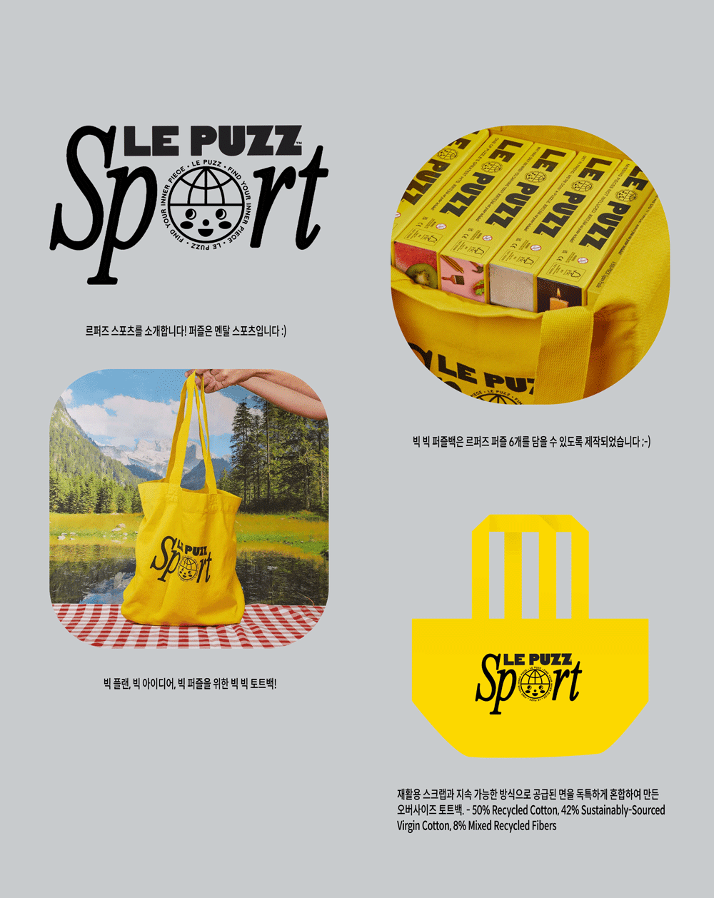 이 완벽한 퍼즐 백을 만나보세요! 수납할 수 있는 물품 목록은 다음과 같습니다: 퍼즐 6개, 대형 비치 타월 2개 + XL 스낵과 대형 물병, 마트에서 구입한 신선한 채소, 소형견 한 마리 (두 마리도 가능할지도...?), 탄산수 한 상자!