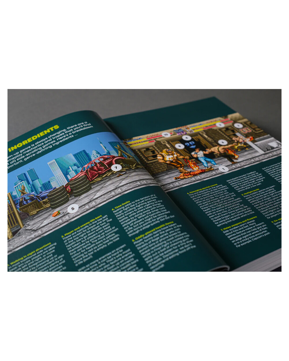 더블 드래곤, 골든액스, 파이널 파이트, 틴에이지 뮤턴트 닌자 터틀스 같은 익숙한 아케이드 클래식과 Denjin Makai, Shadow Force, Gaia Crusaders 와 같은 매니악 명작들을 심층 탐구하며 각 작품에 대한 리뷰는 물론 힌트와 팁, 스테이지·적 공략 가이드를 제공합니다. 수많은 스크린샷, 스프라이트, 레벨 맵이 애정을 담아 큐레이션되어 높은 제작 기준으로 정성껏 펼쳐집니다.