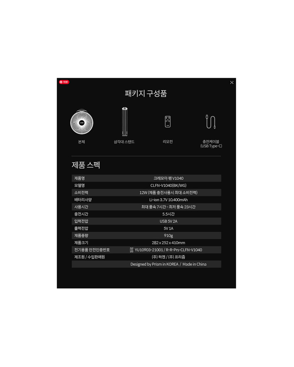 2002년 설립된 프리즘의 크레모아는 아웃도어 LED 조명 브랜드로 널리 알려져있습니다. V1040은 2020 레드닷 수상 제품인 V600의 디자인을 계승하면서 크기와 기능을 개선한 버전입니다.