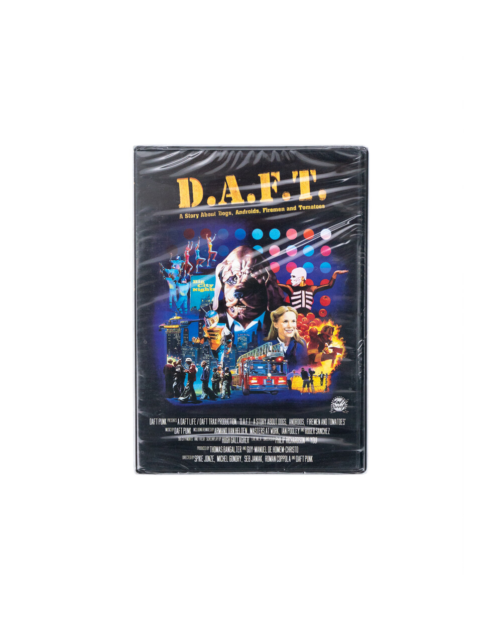 DAFT: A Story About Dogs, Androids, Firemen and Tomatoes 는 1999년에 출시된 Daft Punk의 비디오 컬렉션으로서 그들의 데뷔 앨범 Homework (1997)에 수록된 6개 트랙의 뮤직 비디오와 메이킹 필름을 포함하고 있습니다. 매우 특이한 이 제목은 비디오의 출연한 개 ('Da Funk' 및 'Fresh'), Android ('Around the World'), 소방관 ('Burnin''), 토마토 ('Revolution 909') 를 의미합니다.