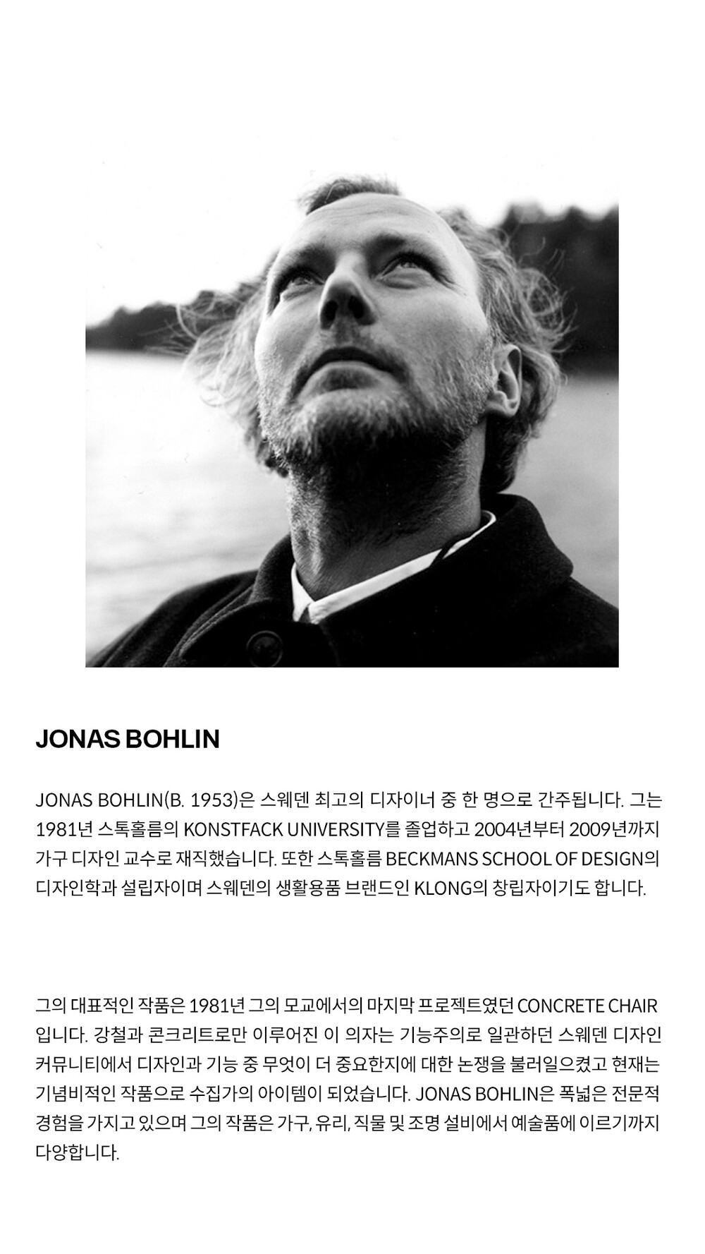 1984년 Jonas Bohlin은 기능주의를 미학적 극단으로 가져간 콘크리트 의자의 연장선인 이 테이블과 ZINK 선반을 만들었습니다. 형태는 본질적인 것으로 정립되고 Bohlin의 초기 작업의 특징인 진한 유머가 나타납니다. 이 테이블은 매우 한정적으로 생산되었습니다.