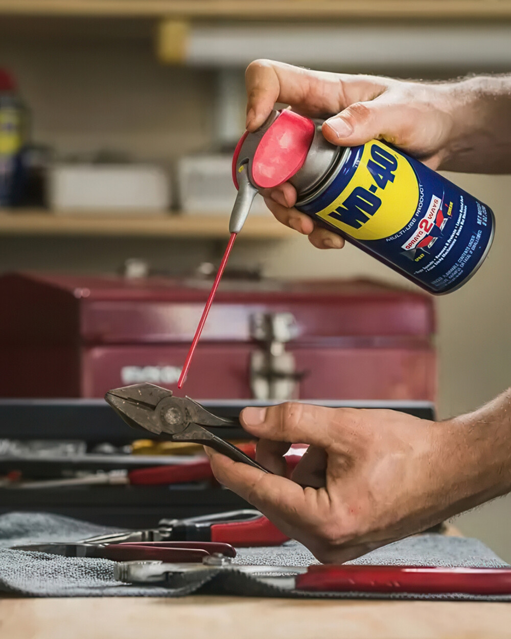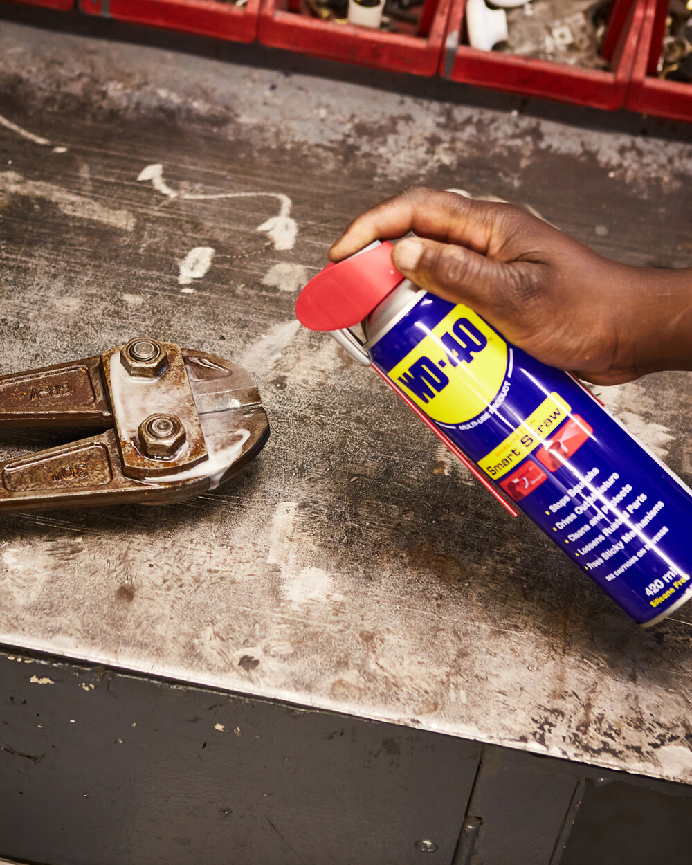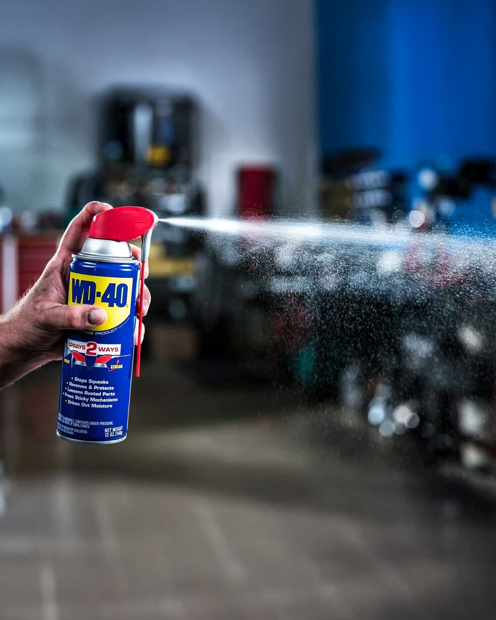 두 가지 방식으로 분사되는 스마트 스트로(Flip-Up Straw) 를 탑재한 WD-40 오리지널 포뮬러. 1개의 캔으로 수분 제거, 부식 방지(코팅), 끈적임·고착 해제, 오염 제거(기름·타르·스티커 자국 등), 윤활(힌지·바퀴·체인·기어 등) 까지 해결합니다. 스트로를 접으면 광분사, 올리면 정밀분사로 전환되어 현장·가정 어디서든 쓰기 편합니다.
