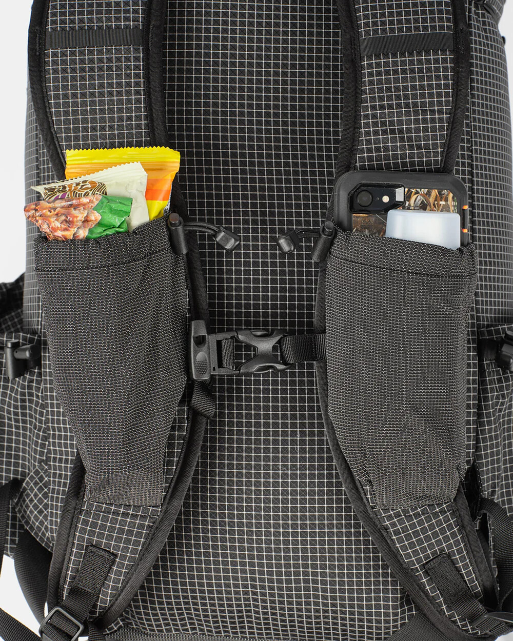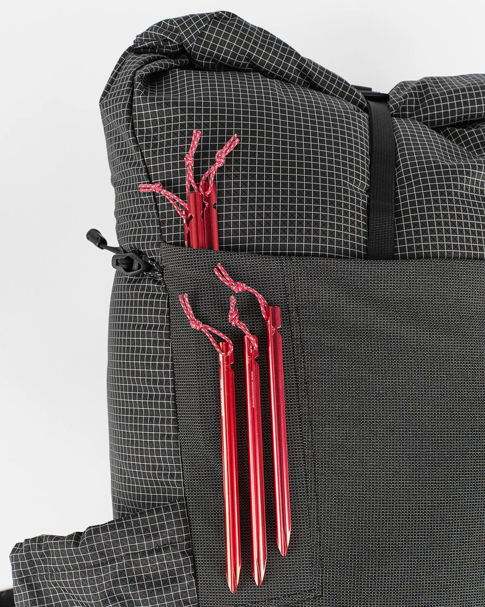 +팔란테가 개발한 신축성이 있는 전면 포켓에는 폴대 및 팩을 위한 분활 공간이 있습니다.
