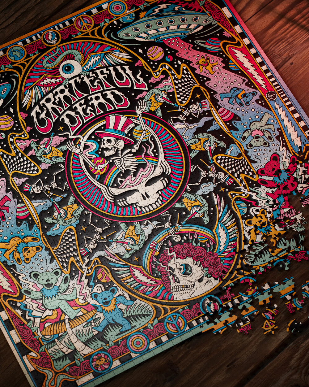 미국 록 레전드 Grateful Dead의 비주얼 언어를 1,000피스 퍼즐로 재해석한 공식 라이선스 직소 퍼즐. 시대를 초월한 정신으로 가득한 사이키델릭한 풍경 속 1,000개 조각으로 리듬, 색채, 그리고 우주의 모험의 세계로 들어가 보세요. 퍼즐 조각 하나하나가 생동감 넘치는 색감을 자랑합니다.