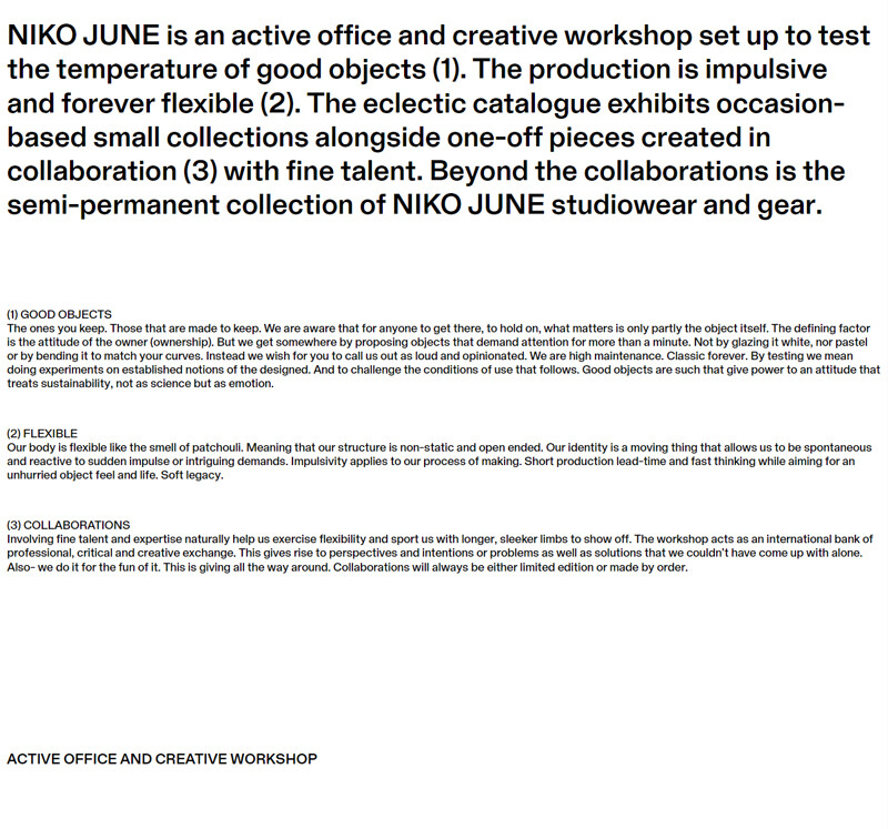 NIKO JUNE는 코펜하겐에 기반을 둔 스튜디오로 그들의 제품은 충동적이지만 유연한 '좋은 물건',