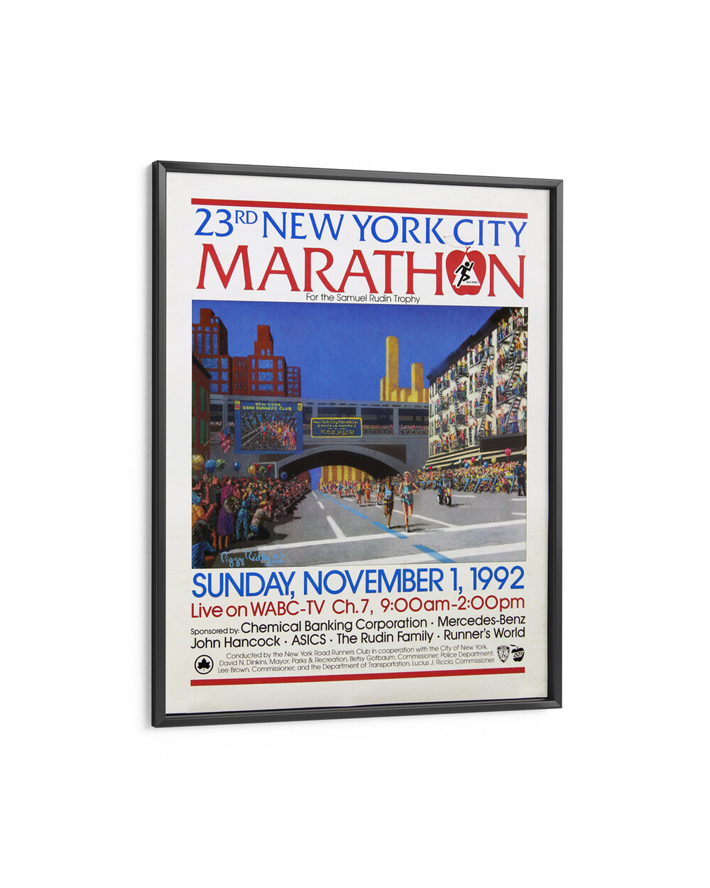 일러스트레이터 페기 라일리(Peggy Reilly)가 파스텔 톤으로 그린 아트워크는 맨해튼 1번가의 열기 가득한 응원석과 선두 그룹의 역동적인 실루엣을 담아 90년대 초 뉴욕의 색과 소음을 그대로 전합니다.