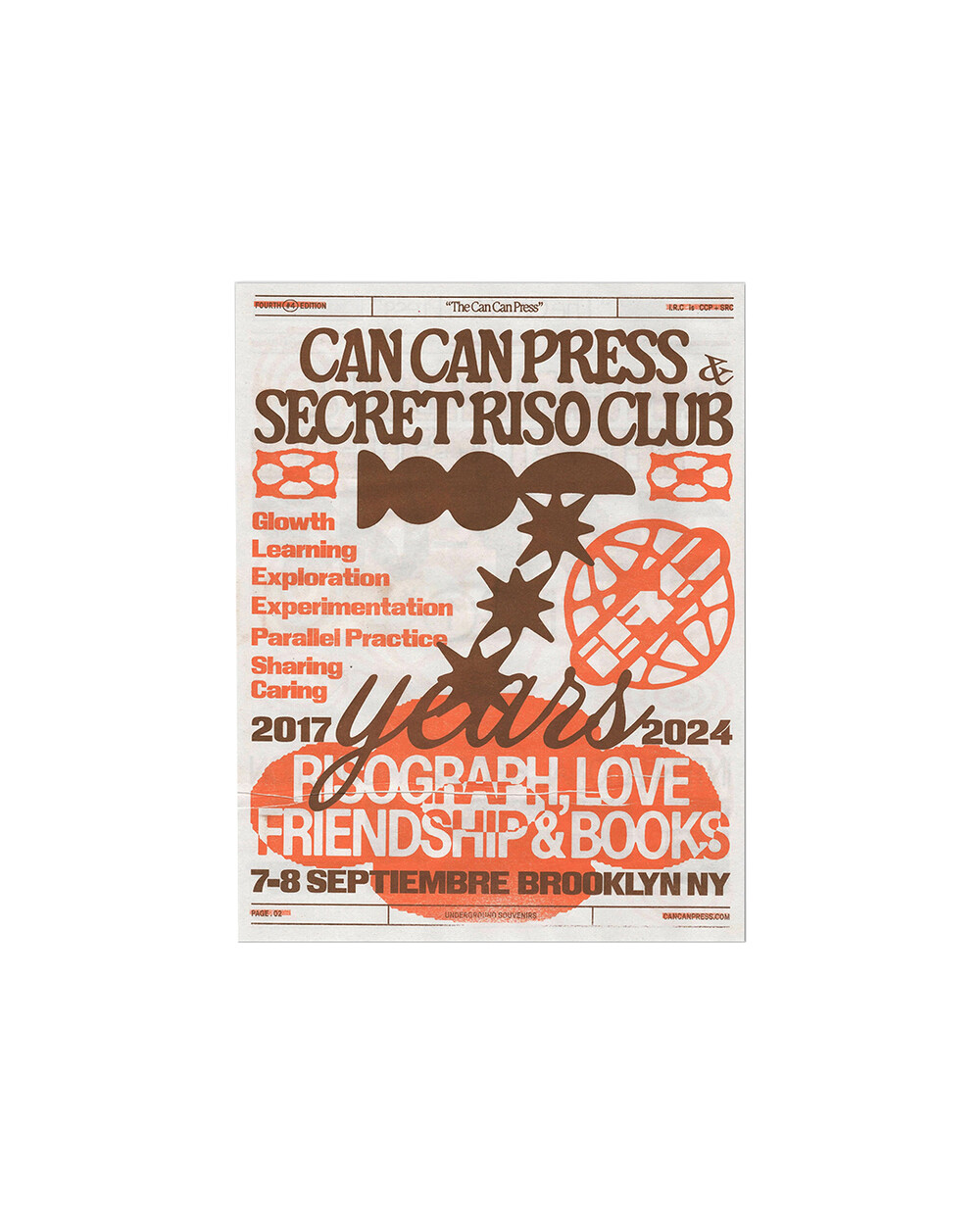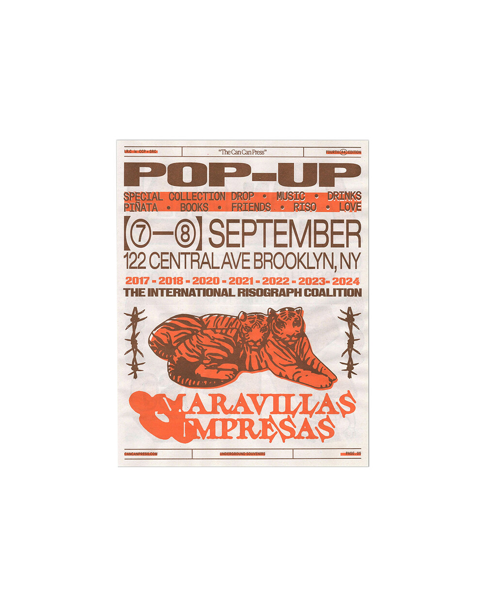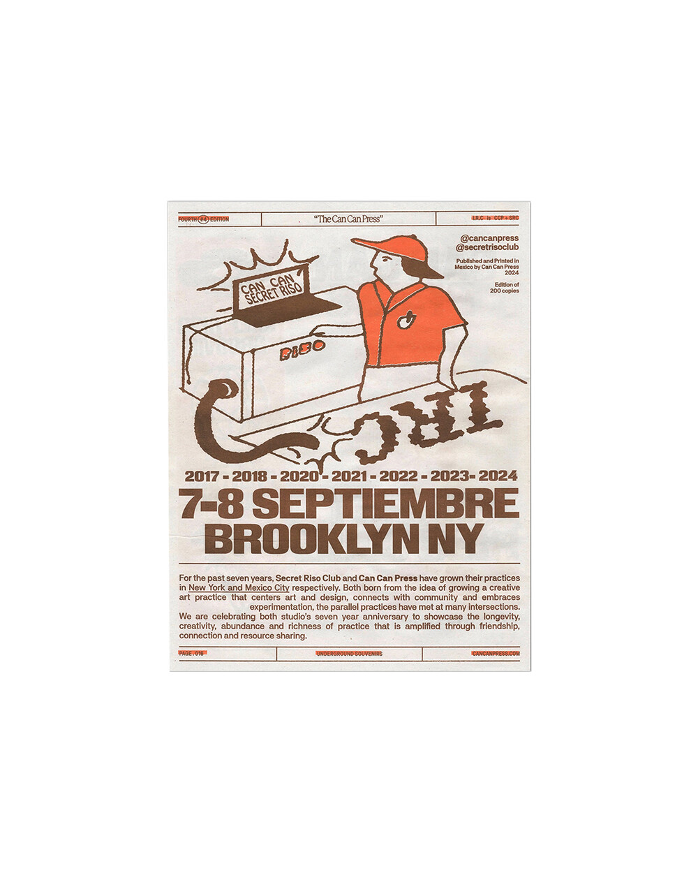 Can Can Press는 멕시코시티에 위치한 크리에이티브 스튜디오이자 출판 레이블로 시각적 아이덴티티 제작, 편집 디자인, 예술 및 디자인 프로젝트 관리에 중점을 두고 있습니다. 2017년 재키 크레스포와 가비노 아수엘라가 설립한 이래 멕시코와 그 밖의 예술 커뮤니티의 허브 역활을 하고 있으며 이들의 제품과 프로젝트는 전 세계 30개 이상의 상점과 도서관에 배포되어 혁신적인 예술과 디자인의 보급을 위한 노력을 반영하고 있습니다.