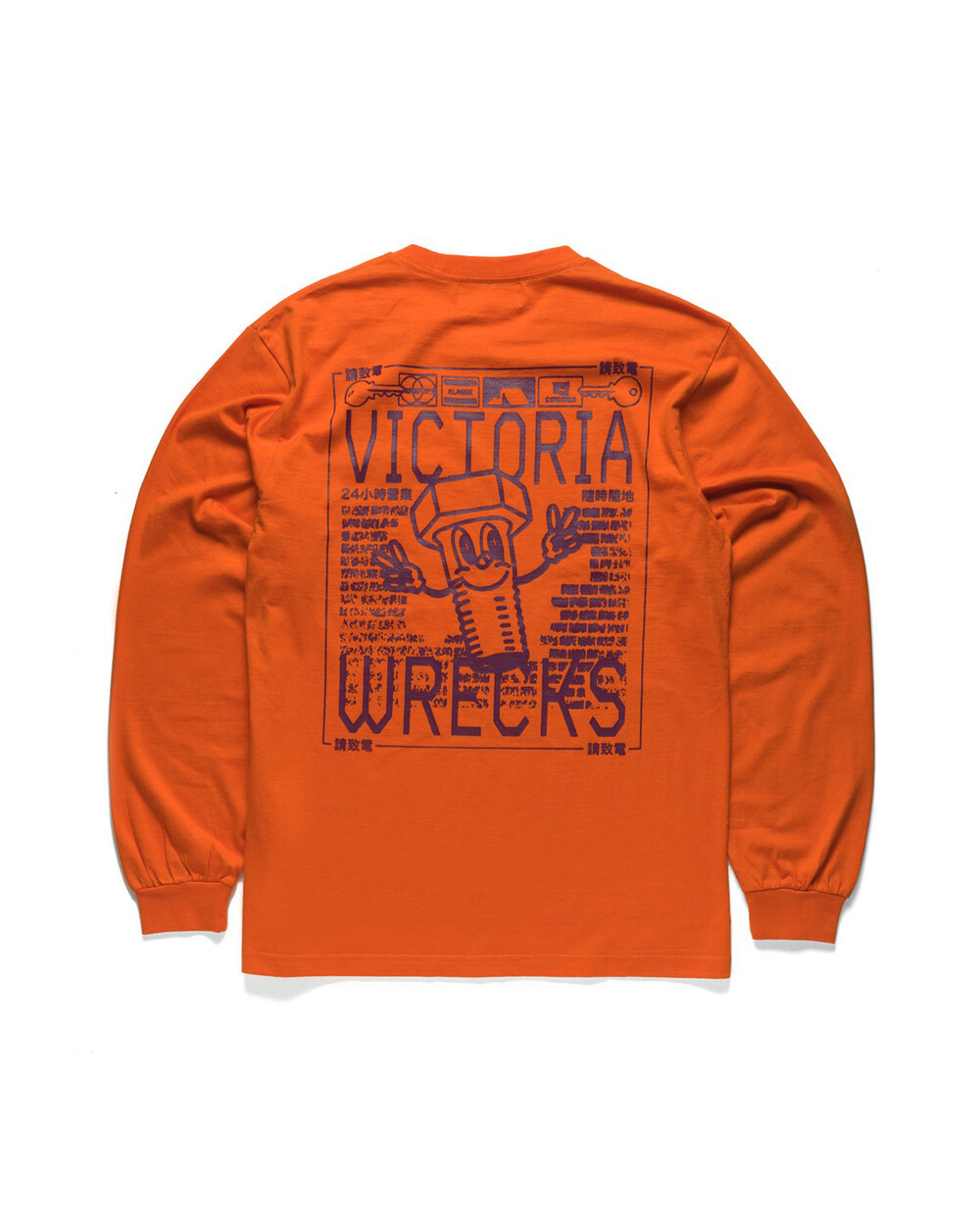 홍콩 스케잇 브랜드 빅토리아와 클라세렉스의 콜라보 롱슬리브 티셔츠입니다.